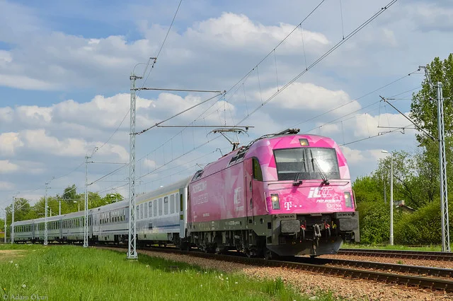 W między czasie przez Dąbrowę Górniczą "przeleciał" mocno opóźniony skład EIC "Sobieski" ciągnięty przez lokomotywę EU44 "Husarz" 5 370 003. W składzie zauważycie jeden austriacki wagon, który ten pociąg często ze sobą z Wiednia do Warszawy przywozi.